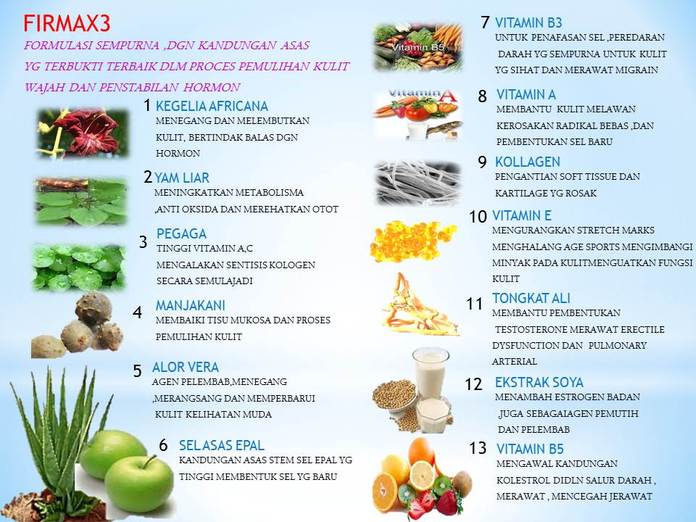 Formulasi Firmax3 mengandungi bahan-bahan semulajadi seperti herba terpilih yang berfungsi memperbaharui sel kulit tanpa kesan sampingan.